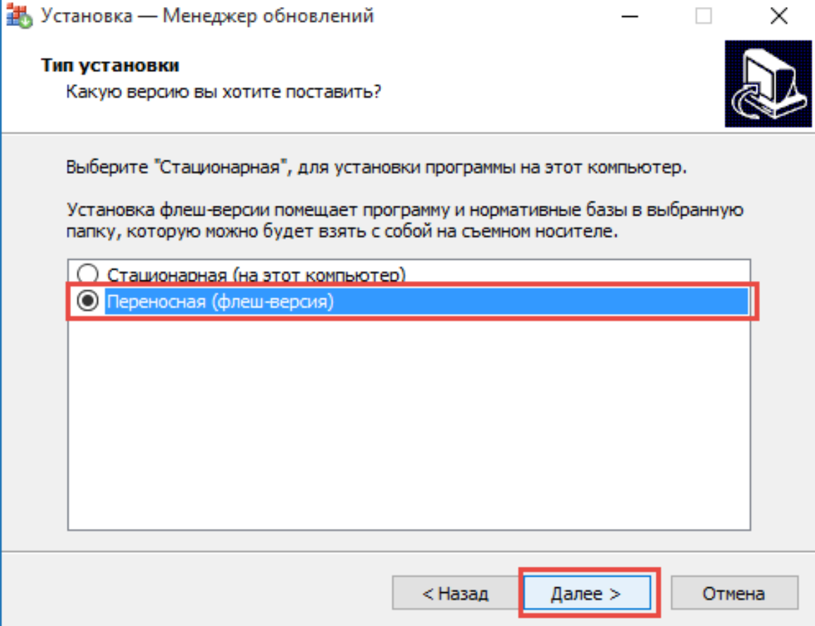 В процессе установки указать «Переносная (флеш-версия)» и нажать кнопку «Далее».