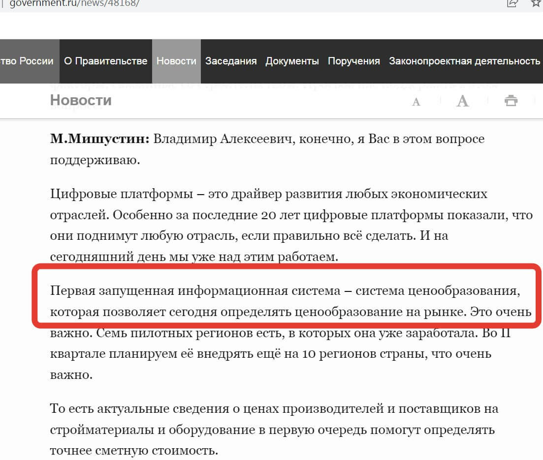 1. Запущенная еще в 2017 году информационная система ценообразования — ФГИС ЦС только в I квартале этого года позволила после публикации цен, а также индексов перейти первым 7 «счастливчикам» на ресурсно-индексный метод (РИМ). В целом, после перехода согласно данных пересчета все +/- одинаково. Однако, текущие цены, а также индексы в ФГИС ЦС публикуются ежеквартально и агрегированно (т. е не по каждому из поставщиков! Еще раз напомним, что в ПП РФ № 1452 от 23 декабря 2016 г., не предусмотрено публикация цен поставщиков в системе!). А значит, не совсем корректно говорить, что система позволяет «сегодня [в моменте!] определять ценообразование с рынка». И Минстрой с ГГЭ аккуратно подтверждают все общими фразами: «это более справедливо, а самое главное — прозрачно». Одно внушает уверенность: теперь, после озвученных планов Михаила Мишустина, переход на РИМ всей страны неизбежен и неотвратим.